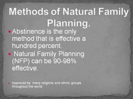 Abstinence is the only method that is effective a hundred percent. Natural Family Planning (NFP) can be 90-98% effective. Approved by many religions and ethnic groups throughout the world.