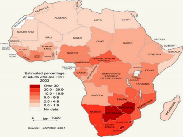 One of Bill Gates’ major philanthropic enterprises has been to provide large scale funding for AIDS medication and clinics in Africa. This map illustrates the predominance of AIDS in Africa in 2003.