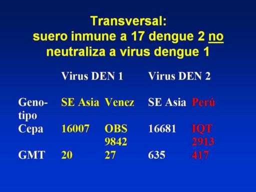 Sin embargo, aunque el virus del dengue 2 parece poseer un epítope que reacciona con los anticuerpos anti-virus dengue 1, la infección en humanos con el genotipo americano del virus dengue 2 no genera aumento de anticuerpos contra  dengue 1 (mostrado aquí con aislamientos americanos y asiáticos).
