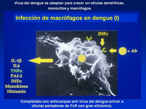 Células de la línea de fagocitos mononucleares son el sitio predominante de infección del dengue in vivo. Anticuerpos no neutralizantes ayudan al virus del dengue a enfocarse en esas células. Todos los virus de la fiebre hemorrágica viral se enfocan en monocitos/macrófagos pero debido al fuerte trofismo no requieren asistencia de los anticuerpos heterotípicos.