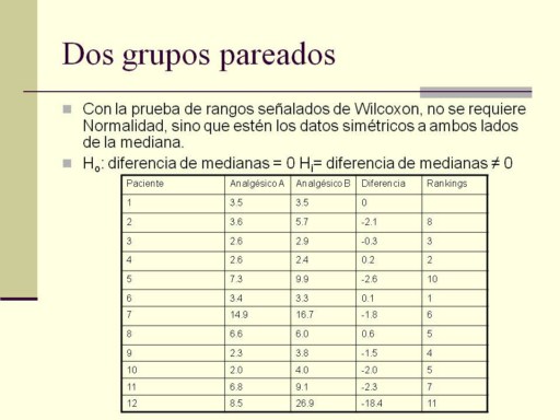 Si usamos la prueba t asumimos que la distribución de las diferencias es Normal y señalamos Ho: δ = 0 Hi:δ ≠ 0 δ es la media de las diferencias. δ = -2.41 SE = 1.48 t= -1.69 p>0.10 |
