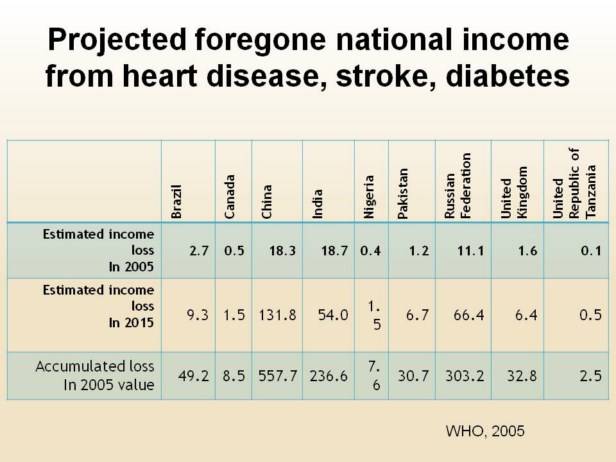 ان نفقات الرعاية الصحية كبيرة جدا. هذا العرض يوضح حجم الخسارة  الهائلة في عائدات الدول نتيجة 3 من الحالات المزمنة.
