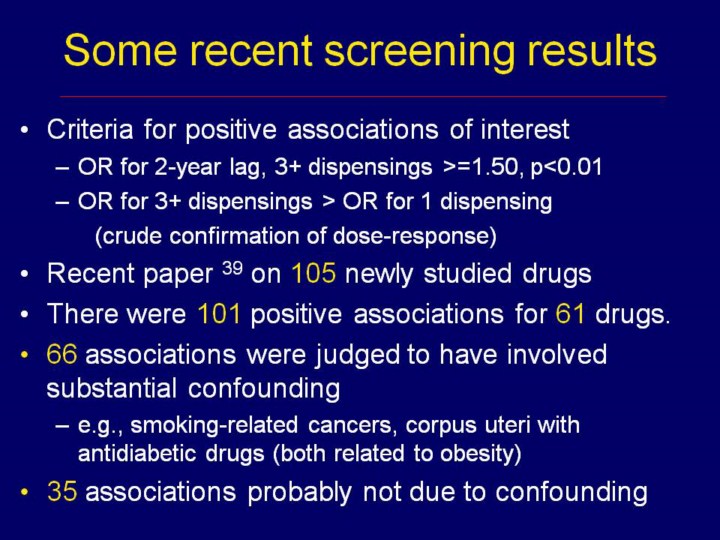 This slide describes our first published screening of commonly used drugs not studied before, using the new database.