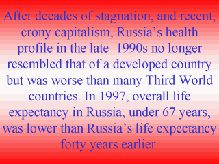 years higher than Russia's. Life expectancy at birth for males in Russia in 1998 was about