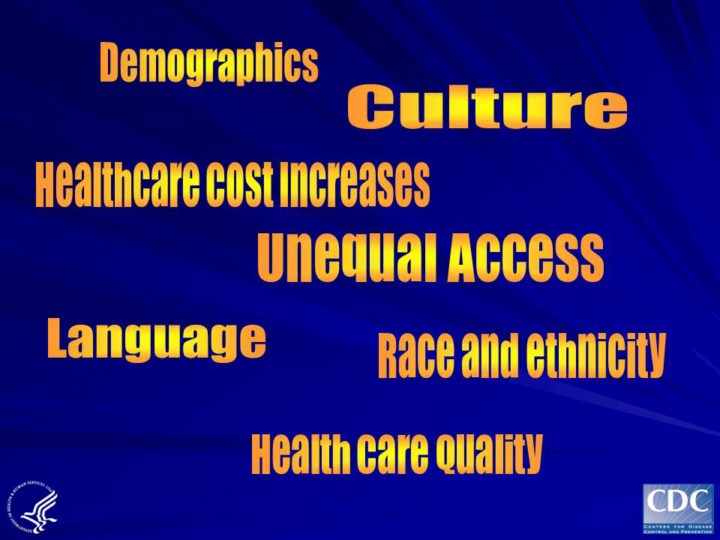 Demographics, Culture, Healthcare Cost Increases, Unequal Access, Language, Race & Ethnicity, Health Care Quality