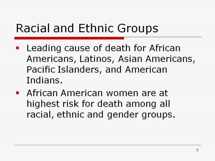 Heart Disease is the leading cause of death for African Americans, Latinos, Asian Americans, Pacific Islanders, and American Indians.