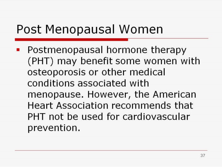 In the past there were some studies that indicated that hormone replacement therapy might be a protective factor for heart disease. That research is now in question. The American Heart Association, US Department of Health and Human Services, National Institutes of Health and the National Heart Lung Blood Institute do not advise women to use postmenopausal hormone therapy to reduce the risk of coronary heart disease or stroke.* Consult your healthcare provider about the risks and benefits of hormone replacement for you. |