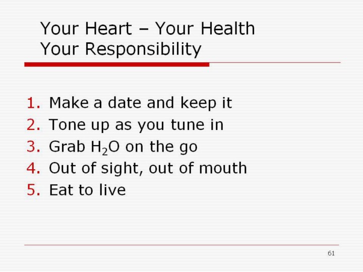 See if you can figure out what these 10 tips translate into taking charge of your health.