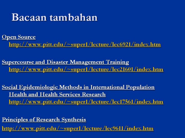 Sila lawati Projek Global Health Network Supercourse untuk kuliah tambahan di