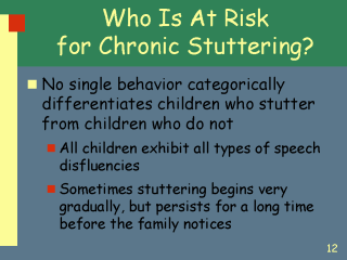 - Sometimes children exhibit very severe stuttering at onset, but still make a full recovery - Stuttering is highly variable…fluctuating from one situation to another, one day to another |