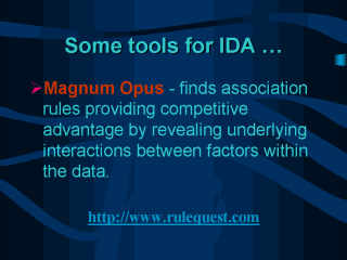supposes existence of a sample of cases where each case is described by: number of attributes, doesn’t matter if they are qualitative or quantitative values (attribute-value data) or number of items (basket data) Problem is: Find ‘knowledge’ describing relationship between attributes/items, so called association rules, something like: IF (attributei is less-equal-greater-then vi and …attributen is less-equal-greater-then vn) THEN (attributej is less-equal-greater-then vj )or IF (itemi & itemk & … itemn) THEN itemj |