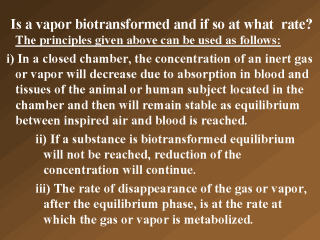 which it is metabolized, i.e. oxygen uptake or oxygen consumption. With modern analytical techniques a wide variety of vapors can be investigated, provided that they are not appreciably absorbed on the chamber walls or animal fur (or that a correction is made for this) and do not react with them. |