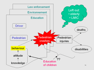 their behaviour on the road - but whether this reduces their risk of injuries as pedestrians remain unanswered. - The other vulnerable group seem left out by appropriate research. - We also lack evidence on effectiveness of training programmes in LMIC: low and middle income countries |