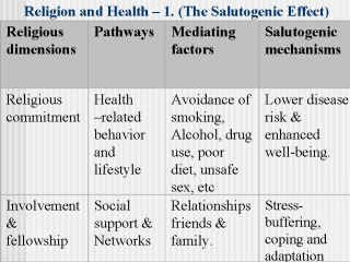 and enteritis (Levin, 1996). Levin (1996) shows the possibility of the salutogenic link between religion and health. See table on slide for some of his examples: For more examples given by Levin on this see the following website and look for the journal noted under the reference list: References: Levin, J. S. & Vanderpool, H. Y. (1987). Is frequent religious attendance really conducive to better health? Toward an epidemiology of religion. Social Science Medical Journal, Vol 43, No 7, 589-600. As quoted in Beit-Hallahmi, B. & Argyle, M. (1997). The psychology of religious behavior, Belief & Experience. London. Routledge. Levin, J. S. (1996). How religion influences morbidity and health: Reflections on natural history, Salutogenesis and host resistance. Social Science Medical Journal, Vol 43, No 5, 849-864. |