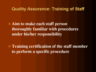 interviews or visits, calibrating instruments, etc. Training should also involve lab