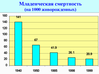 (младенческая смертность). Изменение уровня