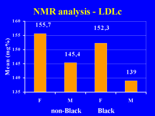 Older women has much higher LDL cholesterol than older men. This is true in both non-black and black.