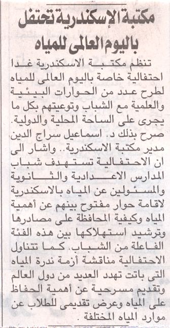 مكتبة الاسكندرية تحتفل باليوم العالمي للمياه