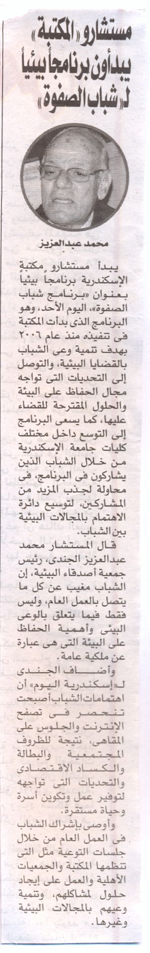 مستشارو"المكتبة" يبداون برنامجا بيئيا لـ"شباب الصفوة"