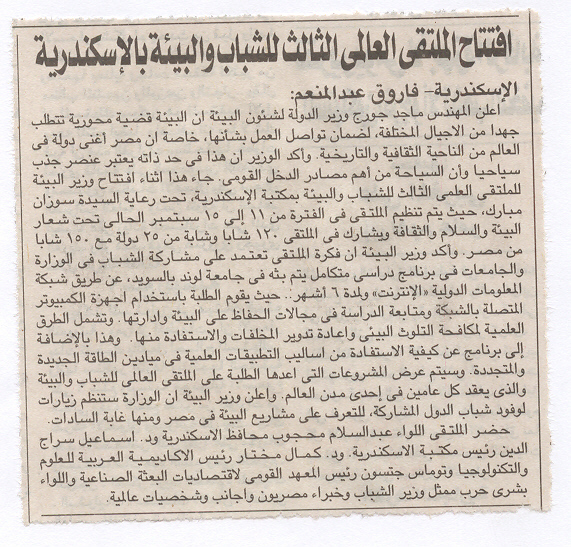 افتتاح الملتقى العالمى الثالث للشباب والبيئة بالاسكندرية