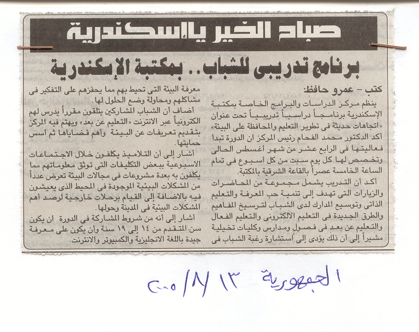 برنامج تدريبى للشباب... بمكتبة الاسكندرية